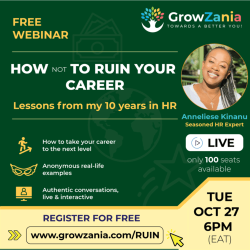 Anneliese Kinanu is a seasoned HR expert with experience in multi-national companies. She understands people and has seen what has both helped to grow and ruin careers. This will be the focus of the webinar.